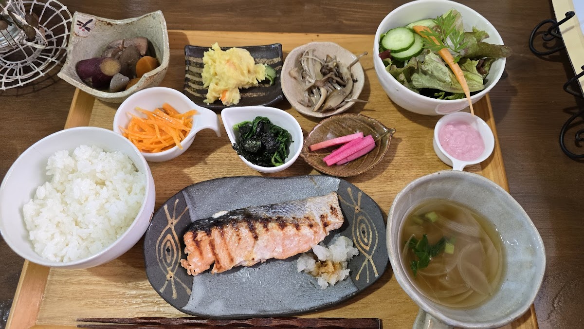 One of the highlights mentioned by customers is the enticing self-made koji-grilled fish. Diners rave about the tenderness and delicate flavor, free from any unpleasant odor—a testament to the café's commitment to quality preparation. The accompanying side dishes are also worth noting, often identified as a delightful surprise by guests who appreciate variety and heartiness in their meals. A flavorful lunch set with 10 dishes for just ¥1350 feels like a steal, especially when coupled with a cozy, inviting atmosphere.